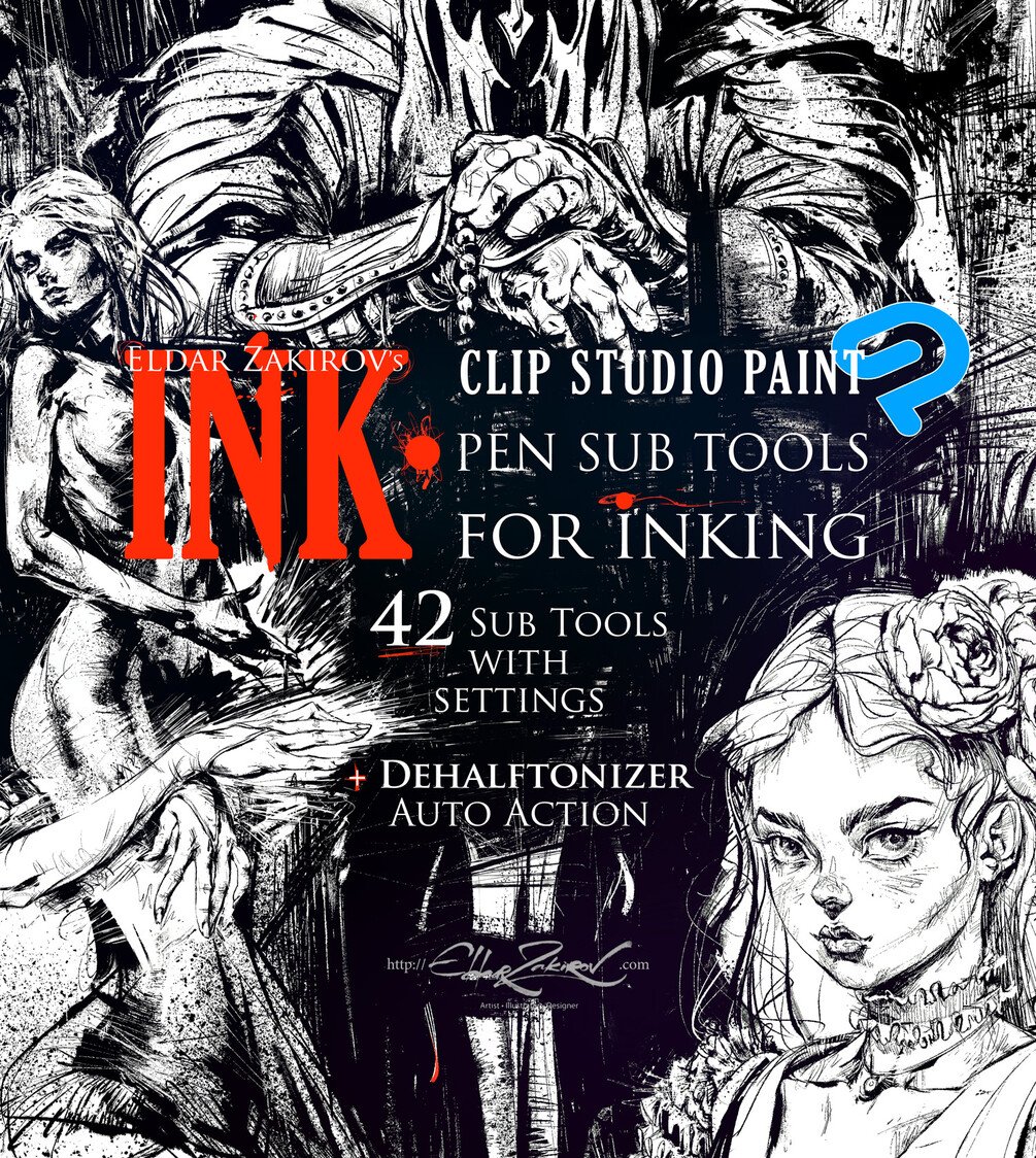INK.• 41 Sub Tools for Inking in CLIP STUDIO PAINT + AutoAction to Remove Halftones