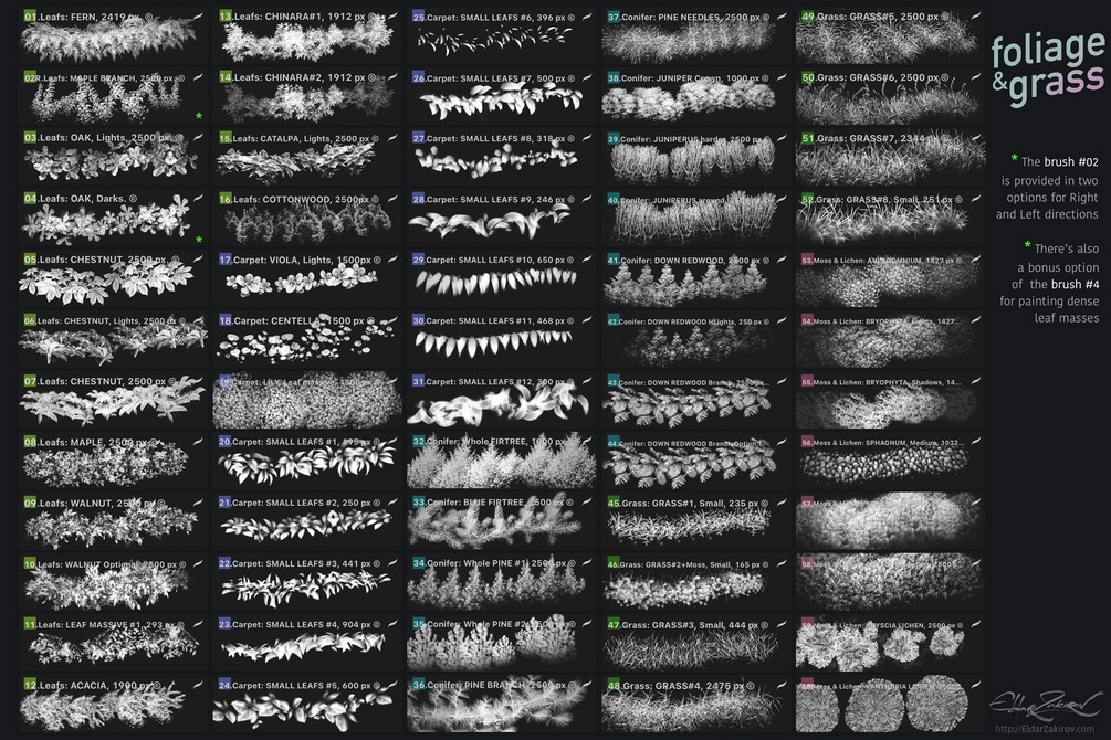 201+ brushes of FUR, INK, Foliage & Grass, SPLASH brush sets