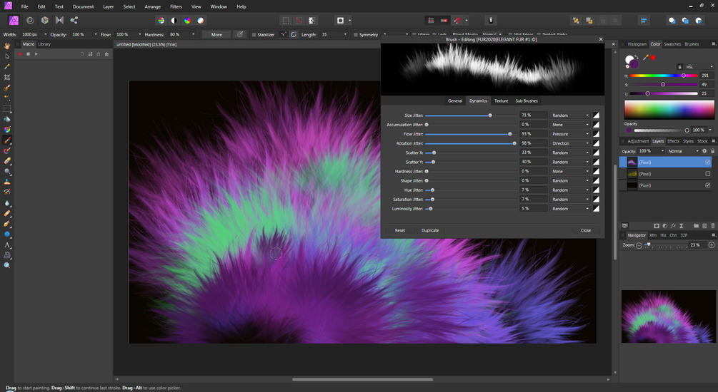 I adapted them for several software products, including Affinity, and added 8 absolutely new FUR brushes. All these brushes allow you to create high-quality, realistic fur, and I'm sure, you'll appreciate the assistance they'll bring you in the work!